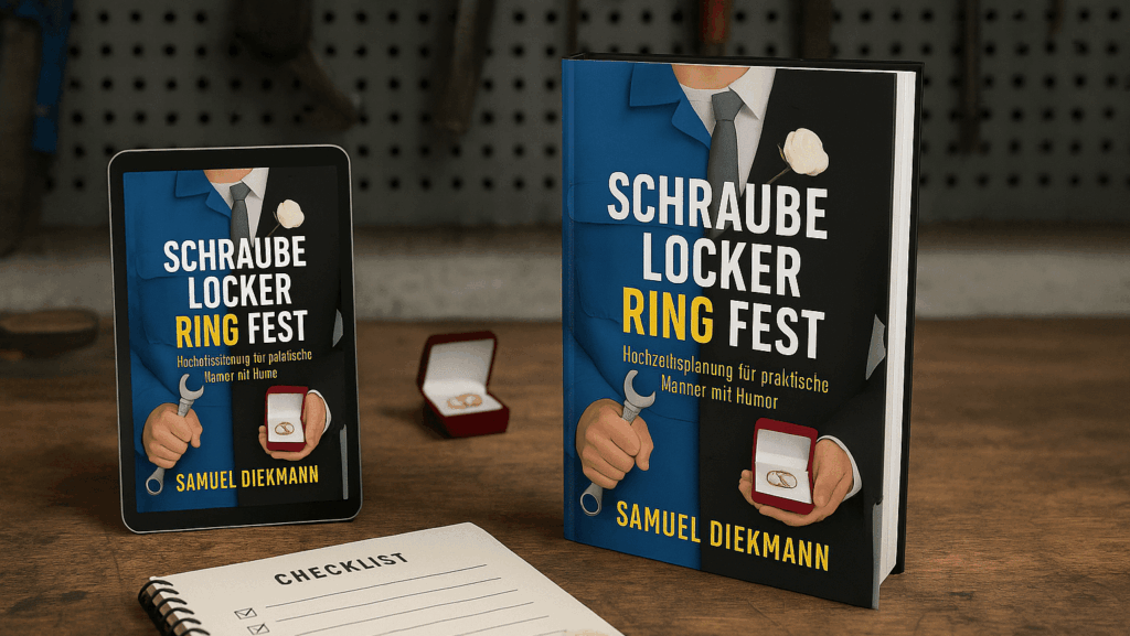 - Hochzeitsratgeber für Männer: Warum „Schraube locker – Ring fest“ das Buch ist, das jeder Bräutigam braucht Das Buch “Schraube locker, Ring fest” ist das perfekte Geschenk an Männer zur Hochzeitsvorbereitung und Planung. Jetzt im HandelMänner und Hochzeitsplanung – eine Beziehung mit Konfliktpotenzial? „Liebling, wir müssen über Tischdecken sprechen.“ Ein Satz, der schon manchen verlobten Mann panisch nach dem Fluchtweg suchen ließ. Für viele Männer beginnt mit dem Heiratsantrag ein Abenteuer, das sie emotional zwar wollen – organisatorisch aber überfordert. Während die zukünftige Braut in Pinterest-Welten versinkt, fühlt sich der … Das Buch “Schraube locker, Ring fest” ist das perfekte Geschenk an Männer zur Hochzeitsvorbereitung und Planung. Jetzt im HandelMänner und Hochzeitsplanung – eine Beziehung mit Konfliktpotenzial? „Liebling, wir müssen über Tischdecken sprechen.“ Ein Satz, der schon manchen verlobten Mann panisch nach dem Fluchtweg suchen ließ. Für viele Männer beginnt mit dem Heiratsantrag ein Abenteuer, das sie emotional zwar wollen – organisatorisch aber überfordert. Während die zukünftige Braut in Pinterest-Welten versinkt, fühlt sich der …